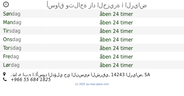 | Søndag | åben 24 timer | |||||