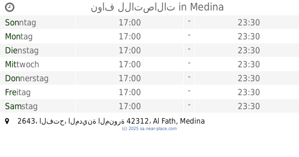 | Samstag | 24 stunden geöffnet | |||||