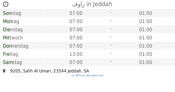 | Samstag | 24 stunden geöffnet | |||||