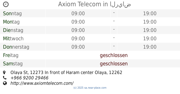 | Samstag | geschlossen | |||||