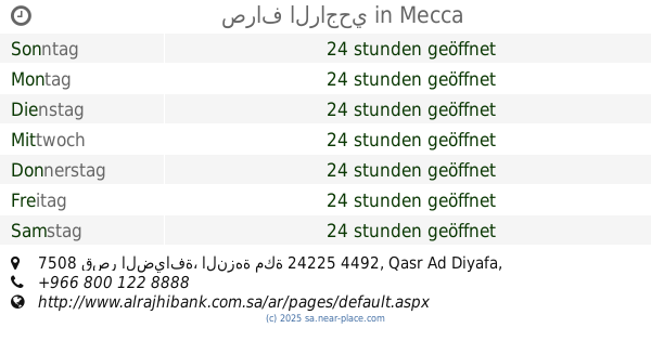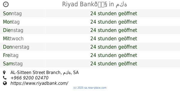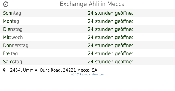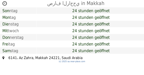 | Samstag | 24 stunden geöffnet | |||||