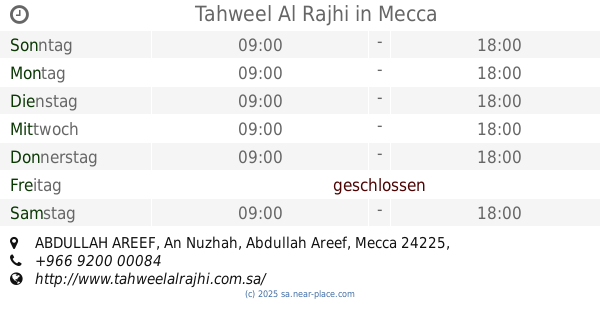 | Freitag | 24 stunden geöffnet | |||||
