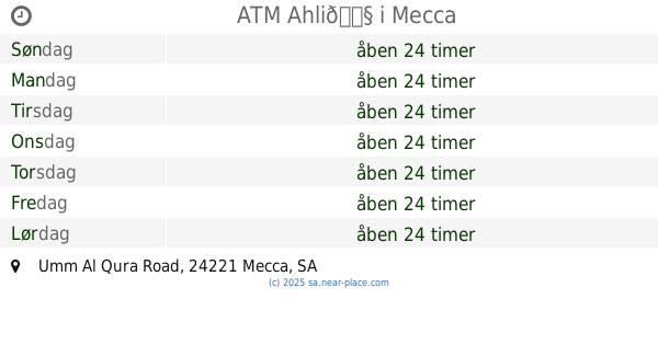 | Mandag | åben 24 timer | |||||